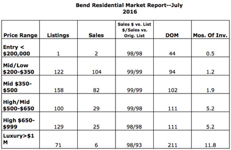 I suppose some would call it an oxymoron . . . “affordable Bend.” Regardless, the low end leader for the month was a 4/2.5, 1812 square foot home that sold for $175,000. Certainly a “fixer” . . . not exactly your green lawn and picket fence; but quite a bargain at just $97/square foot.