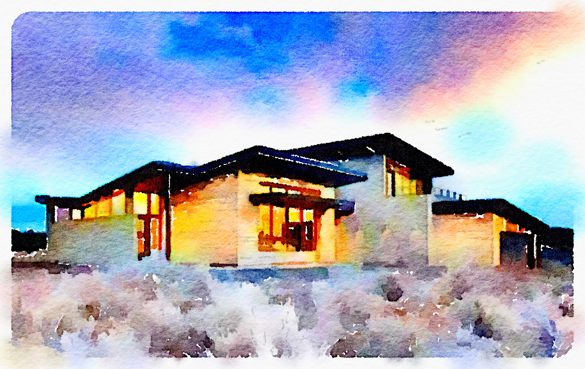 A watercolor of the above mentioned contemporary home in Tetherow at $1,877,566.