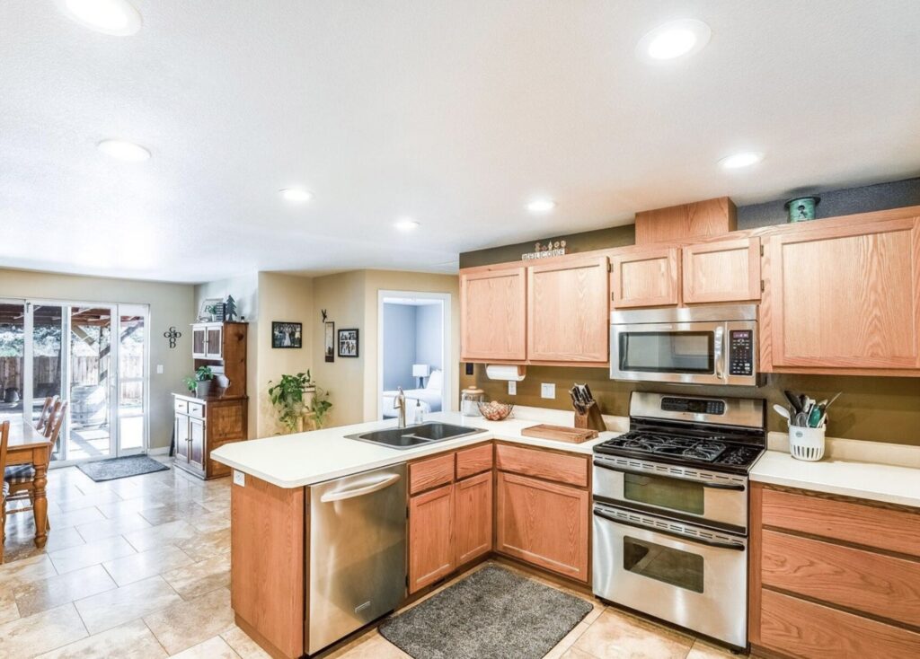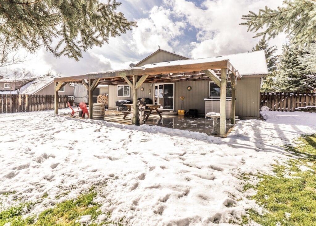 Built in 1998, this one owner house on a .25 acre lot featured a casual bonus and living room, also a private back yard– perfect for pets or entertaining! Though I’m always surprised by the amount of snow on Bend’s east side during the summer . . .