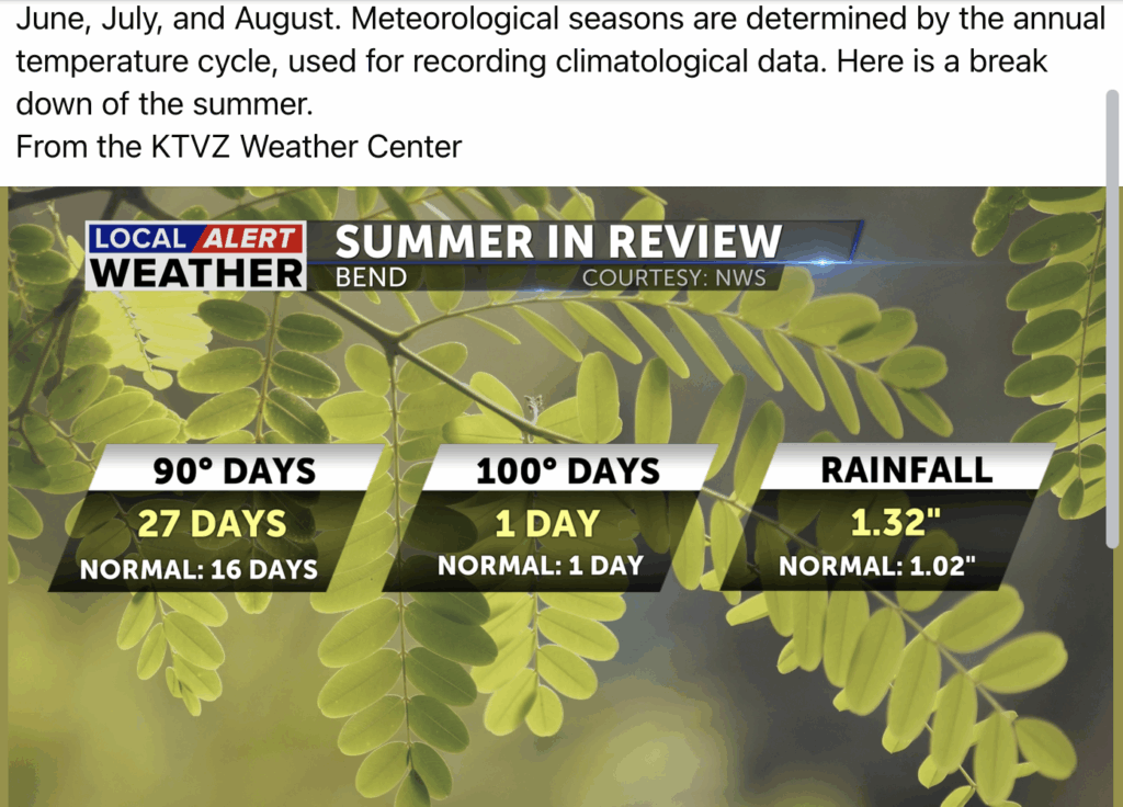 “Meteorological Summer” . . . Bend Real Estate Report